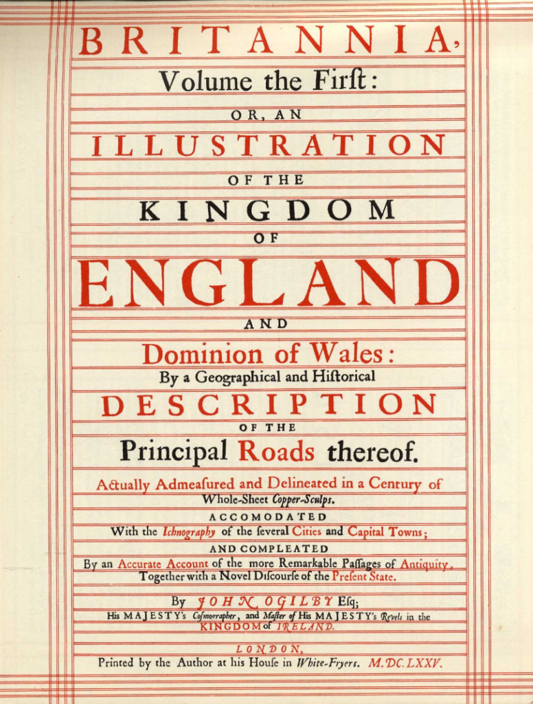 We had to wait for the second half of the seventeenth century for the meaning of road to be used as we use it. John Ogilby’s Britannia, of 1675, was subtitled: A Geographical and Historical Description of the Principle Roads thereof. Each map is headed The Road from… The word Road had arrived. We’ve hung on to highway, street, and lane, but mostly, road is king.